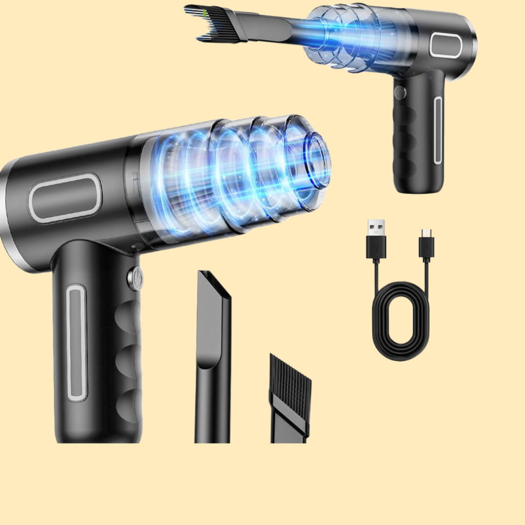 ATTENTION : Cet aspirateur de voiture est compact et ne convient pas au nettoyage de grandes surfaces. Il est idéal pour nettoyer les détails de la voiture et de l'intérieur, dépoussiérer les bureaux et les claviers d'ordinateur.
